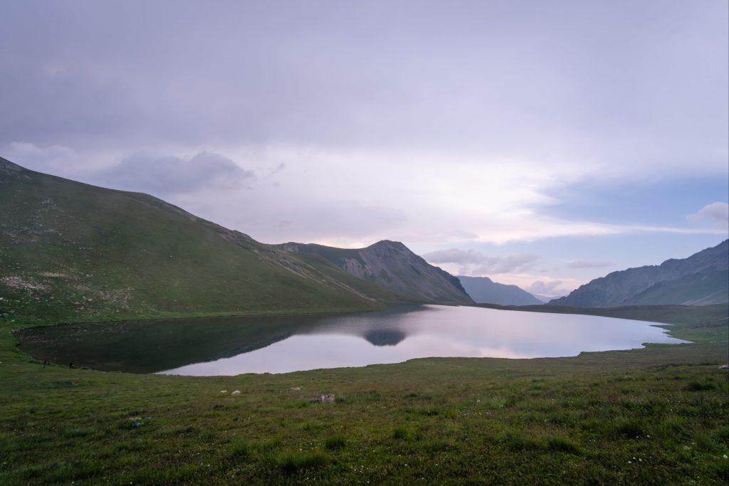 I setup my tripod and wait. The water is so clear you can see the individual colour of each pebble lining the floor of the lake. Every now and then a ripple echoes from the centre of the lake to the shore. The light never does come and the rumbling intensifies, a glimmer of colour in the distance hints to a sunset somewhere, but not here, amongst the storm clouds. A bolt of lightning strikes nearby and the rain begins to pour. It’s time to get out of here.